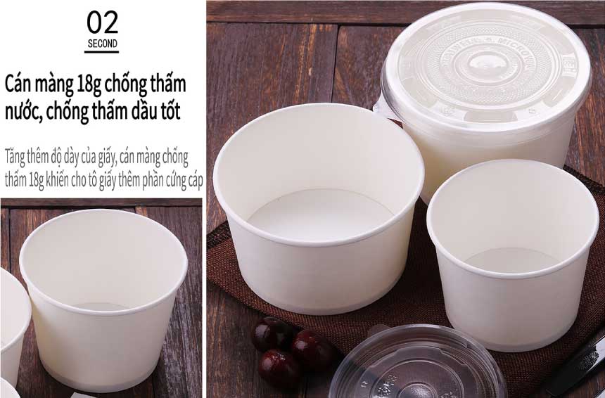 Dung tích tô giấy đựng thực phẩm thường bao gồm : 360ml 450ml 500ml 600ml 800ml 900ml và 1000ml.