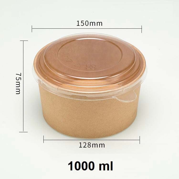 Tô giấy kraft nâu 1000ml – Giá sỉ, nắp PET/PP – RVC
